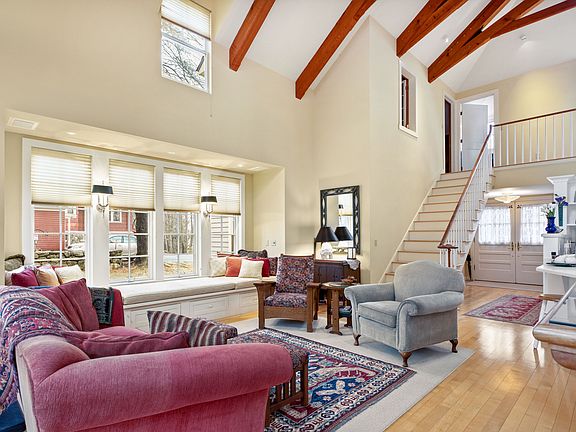 This "Best of the Best" renovation performed by This Old House and designed by renowned architect Graham Gund. A one-of-a-kind two-story home with soaring beamed-framed ceilings is nestled on a sharply maintained, tree surrounded lot in Lexington's The Manor. A dramatic, artistic synergy of old and new exists with some of the charms of the original mid-century details including a main level bath and fireplace. The newer and unique open floor plan offers two/three bedrooms on the main floor and a lavish master suite and library on the second floor. This home will accommodate multi-generational living and almost anyone's lifestyle. The all-white kitchen opens to the same dramatic timber vaulted ceiling, overlooked by a second-floor open walkway linking the master suite to the quintessential, warmly hued tones of the fireplace dominant library. The great room & dining room have 3 sides of over-sized windows & doors that bring the outside in, with a view of the granite patio & lush ground.