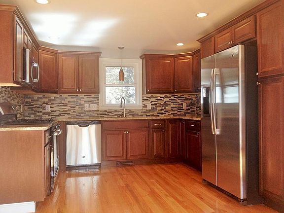Welcome to this beautifully renovated dormered cape located in a great neighborhood near the center of town. 1st floor has an open concept layout with a beautiful new kitchen, recessed lighting, gleaming hardwood floors and new bathroom with tiled flooring and tub surround. Kitchen boasts new cabinets, granite counters, tiled backsplash and S/S appliances. Top floor has 2 spacious bedrooms with recessed lighting and a brand new bathroom. There is also a newly finished family room in basement with lots of natural light. The interior renovations include new plumbing, electrical, lighting, flooring, trim, doors, bathrooms, kitchen, fresh paint and much more! Exterior updates include new oversized deck overlooking a spacious, flat backyard, new roof, new 8' dormers, custom stone work leading up to the front of the house and fresh landscaping. Commuter rail only minutes away! Quick closing preferred. Value range pricing from $399K-425K