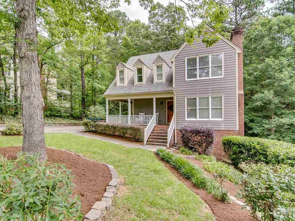Lovely Woodcroft home nestled in the cul-de-sac, yet a private retreat from the hustle and bustle of life. Peaceful three-season room allows you to take in the beautiful wooded views all year round. Charming wrap-around front porch, easy access to walking trails, most desirable location in Durham. 3 bedrooms, 2 full baths and a powder room. Southpoint, Duke, Chapel Hill, Durham, get where you want to go, quickly! Come see this beautiful home and make it yours.