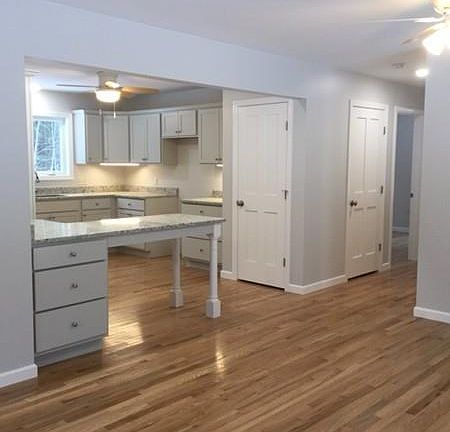 Under construction - nearly complete! Light and airy, 2-bedroom ranch with open floor plan, on 2 acres in a country setting. Very energy-efficient. Home has 3 bedroom septic system, 1-1/2 baths, 1st floor laundry, brushed nickel fixtures and mudroom off a covered porch. Watch the birds and chipmunks cavort along the stone wall from the 11 x 12 deck off the dining room. Spacious kitchen with deep stainless steel single-bowl sink, wide window over the sink, pantry, under counter lights, light gray cabinets and granite countertop with peninsula extension. Flooring is tile in both baths, laundry room and mudroom, otherwise natural oak hardwood floor through-out. Generous storage space includes 7 storage areas to include a linen closet in bathroom, coat closet in mudroom and storage area in laundry room. Home has a full basement with hatchway and underground electric service with conduit in place for 2020 broadband! Beautiful fall colors!