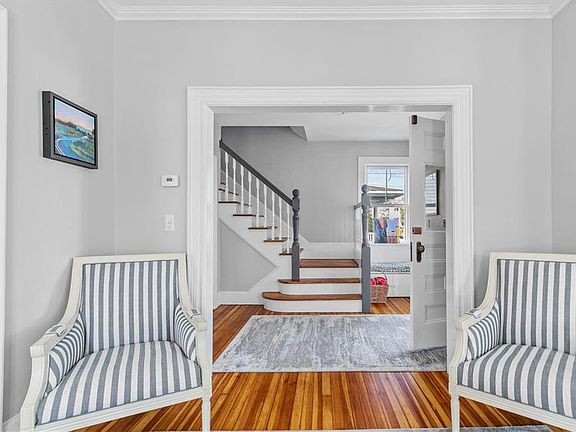 Welcome to 17 Bliss Road. This lovely Victorian located at the corner of Gibbs and Bliss offers great proximity to multiple Newport neighborhoods. Enjoy walking down Gibbs Ave. to Cliff Walk, Easton’s Beach and Bellevue and then you are steps away from innovative Broadway with some of the best restaurants, new food markets, coffee shops and great shopping. This Victorian has several unique features. The enclosed front porch leads to wrap around first level porch & a second level wrap around deck create beautiful architectural details as well as lovely multi seasonal living spaces. The interior offers an updated kitchen with soap stone counters, original pantry and built-ins, half bath, front living room, second living room with fireplace and dining room. Second floor has the full shower / tub bath and four spacious bedrooms. The exterior offers a driveway for 2 cars leading to a fenced back yard with stone walkway and patio area with room to grill and entertain. Seasonal plantings and grasses grace the perimeter creating a beautiful setting. Welcome home!