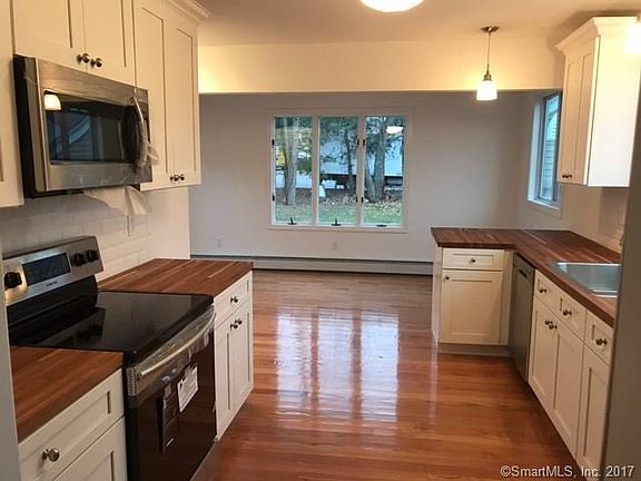 Just turn the key and decorate! This beautifully remodeled Cape Cod home has been upgraded from new roof and vinyl siding to a brand new heating system. A bright and sun-filled kitchen offers new white cabinets and lovely cherry butcher block counters. New stainless steel appliances await. French doors off of the kitchen lead out to a large deck perfect for entertaining family and friends. Spacious living room with a luxurious wood burning fireplace. Two impeccably tiled full bathrooms both with cathedral ceilings and skylights. Gleaming original oak hardwood floors throughout entire home. Minutes to Middletown and other highways. Don't miss this opportunity to live in like-new construction!