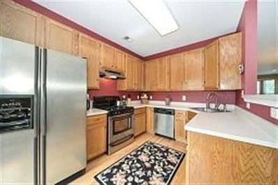Inviting and filled with natural light, 3 bed townhouse with sought after 2 car garage! Beautiful hardwood floors on first level.Gas fireplace surrounded by built in oak shelving. Large LR & DR combo.