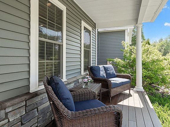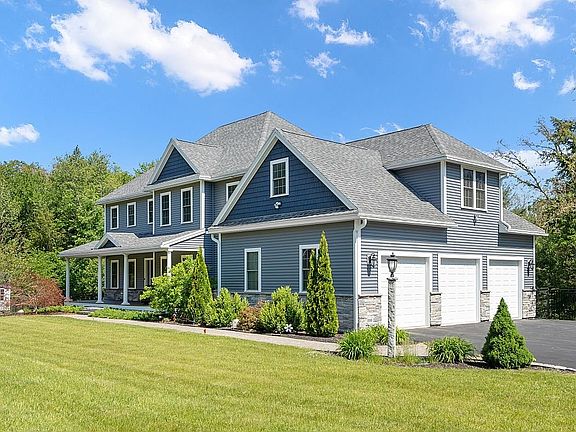 Welcome to this Stunning, young custom Colonial home located in one of the most coveted neighborhoods in town. Featuring over 5400 sq-ft of living space, 4 bedrooms and 4.5 baths on 8 acres of land. Beautiful entry foyer is flanked by home office w/ French doors and formal dining room, which leads into the gourmet kitchen w/ stainless steel appliances, granite countertops, 5-burner gas cooktop, double wall oven, large pantry, and 9-ft kitchen island with bar seating. Breakfast area w/ adjoining sunroom and slider that opens to large wrap-around deck overlooking the private, wooded backyard. Open Living room features custom built-in cabinet/bookcase and fireplace w/ pellet stove. 3-car garage leads into mudroom w/ built-in bench and coat hooks. The Primary suite features luxurious bath w/ double vanity sinks, soaking tub, walk-in tile shower, and massive walk-in closet. Two bedrooms w/ shared full bath and a fourth bedroom w/ separate bath. Separate Laundry room on second level, plus a massive Family room for entertainment and/or additional office/study area. Vacation at home in the walk-out lower level featuring Recreation room w/ 9-ft wet bar, theater/media room, bonus bedroom w/ walk-in closet and full bath w/ walk-in tile shower. Outside is a relaxing oasis complete w/ custom stone patio, built-in fire pit and waterfall fountain.