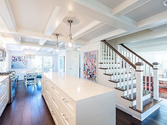 - Features: Beamed Ceilings, Flooring - Hardwood, Dining Area, Pantry, Countertops - Upgraded, Kitchen Island, Cabinets - Upgraded, Deck - Exterior