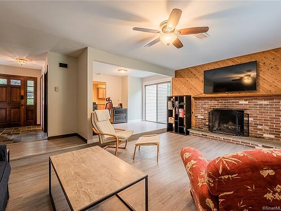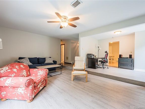 Welcome to 17 Brookfield Dr, single level living at its finest! This 3 bedroom 2 bath ranch has been well maintained & updated over the years. Up the steps of the front porch & through the main entrance, you're welcomed into a large sunken living room complete w/ gas fireplace surrounded w/ brick & knotty pine, & a slider to a deck overlooking your private backyard & access to a unique fork in Latimer Brook where you can sit back & listen to the beautiful sounds of nature. New laminate floors lead from the living room & step up into the office w/ another slider leading to a separate deck & fenced in area, perfect for kids or pets. The office connects to the large kitchen & dining room, w/ a granite countertop at the breakfast bar/island, loads of cabinetry & counter space, stainless steel appliances including a gas range, & access to the large 2 car attached garage. Down the hall you'll find a full bath, master bedroom suite w/ private full bath, & 2 additional bedrooms, all w/ plenty of natural light & hardwoods. Additional features include fresh paint throughout, new hot water heater, full basement w/ workshop, laundry area, & plenty of potential for additional finished space. Conveniently located at the end of a cul-de-sac & within close proximity to Cedar Brook Golf Course, easy access to I-95, I-395, Rt 85, & restaurants, shops, Costco, Stop & Shop, & more! Enjoy the 3D Tour link here: rem.ax/17BrookfieldDr & see all that this amazing property has to offer!