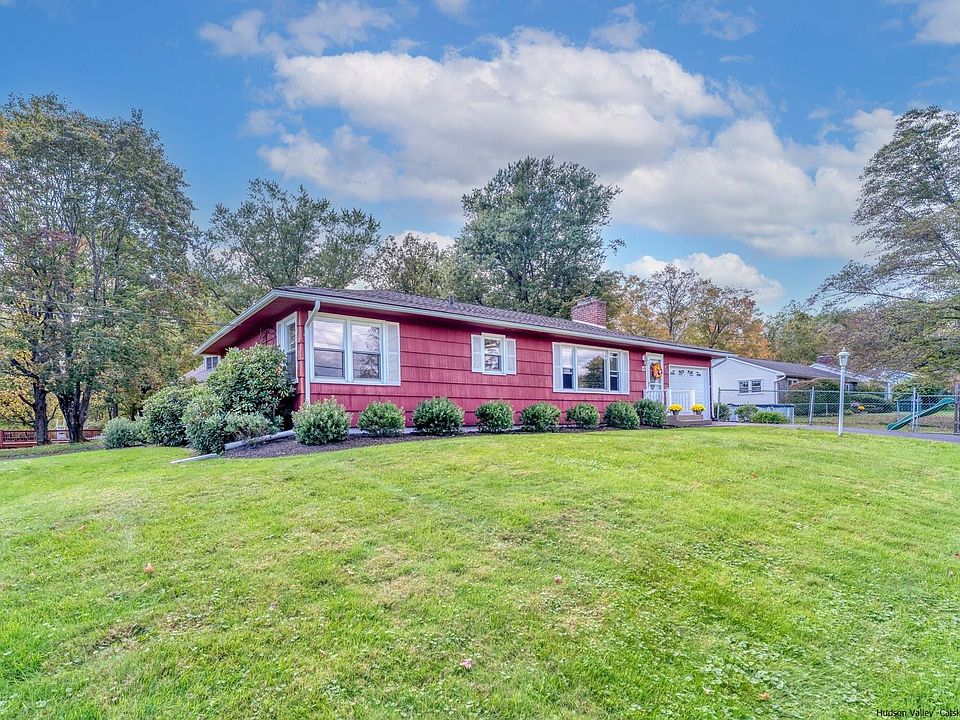 True Ranch.... This is the home where memories are made! Welcome to this 3 Bedroom 1 Bath home designed for enjoyment! Large living room with brick fireplace (Condition Unknown) flows into the large eat-in kitchen with center island....turn eat-in kitchen into dining if you like! Sliding glass doors encourage outside dining under a lovely Pergola or stone patio. Back inside - 3 Bedrooms, 1 full bath and a full basement that could be just the project you are looking for with a B-Dry System in place. Two entrances to the basement- One from the 1 car garage and another from the dining area. All this framed on an extra large .23 lot w/fenced above ground pool that has a new liner, a dog run and still space for a neighborhood game of kickball! House is Cedar sided with newer roof (2015) - Nothing to do here except move in and enjoy!