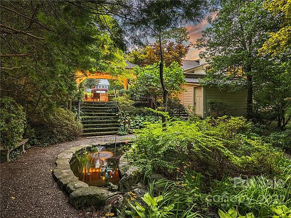 This eclectic Tudor cottage with historic garden designed by Landscape Architect Doan Ogden is in the heart of Asheville’s Kenilworth neighborhood. Redesigned with intentionality, the home is a confluence of old world charm, modern functionality and abundant natural light. Architectural arches, original built-ins, custom nook table, exposed brickwork and kitchen island repurposed from an antique Swedish workshop bench add to its character. Mornings begin with views of Beaucatcher Mountain from the primary before coffee on the front porch. Entertain with ease by utilizing the dumbwaiter that seamlessly connects the kitchen to the outdoor Cedar pavilion complete with built-in grille. Stroll through the garden where something is always in bloom. Guests will have plenty of space to stay with three bedrooms, including a junior primary suite on the main level. Light fills the artist studio and the dream workshop. The covered patio, 2-car garage and porte cochere keep you from the elements.