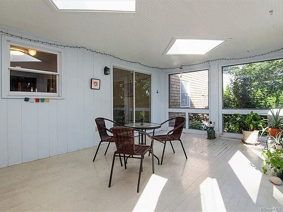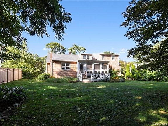 Mystic neighborhood two blocks from Library and four to downtown. Charming Cape in beautiful setting of older homes. This four bedroom, two bath home is perfectly located. Rooms are spacious and there are hardwood floors throughout. The living room has a fireplace and opens to the dining room. Entering the front door you see through the living room/diningroom to a larlge screened porch that overlooks the treed rear yard. There is a first floor family room with a whole wall of built in bookcases and shelves. This room also opens to the screened porch. The first floor features the master bedroom and a full bath. Another room could be a wonderful office space or bedroom. The second story has two more spacious bedrooms and another full bath. There is a full unfinished basement. A wood deck is accessed through the sunroom and also overlooks the rear yard. This is a private space yet close to Mystics shops and dining opportunities.