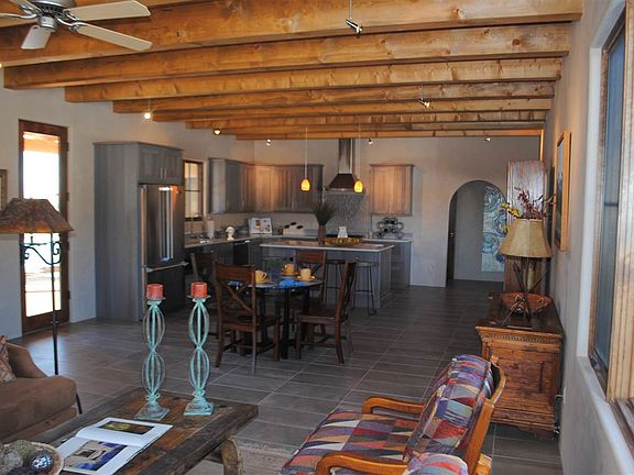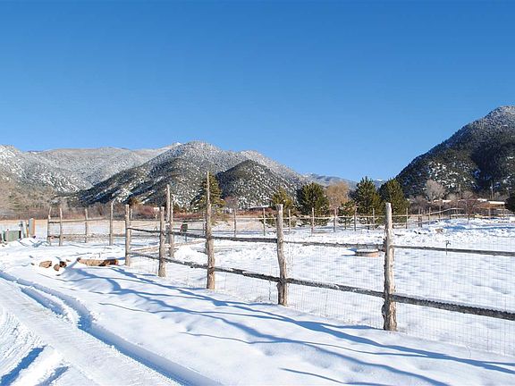 Yes you can have it all, brand new construction and a 10 minute drive to Taos Ski Valley, this 3 bedroom/3 bath Pueblo style home with a contemporary flair has just been completed. Enter thru enclosed landscaped courtyard to the open floor plan, which features "gourmet kitchen" with all Viking appliances and quartz countertops. Magnificent views of Taos Mountain and El Salto from every room in the house. All three baths feature frame-less shower enclosures, granite countertops, glass tile work and master bath has free standing tub and double sinks. Hot water in floor radiant heat with 5 zones, including heated oversized garage. Inside and outside living with large west facing portal, a perfect spot for a hot tub and enjoying the sunsets. Fully landscaped with large trees all on a drip irrigation. Halogen lighting throughout and craft maid ceiling fans in all 3 bedrooms. 3319 square feet under roof. Fir interior doors and Emtec hardware. Full sized laundry with Samsung front loading washer and dryer.