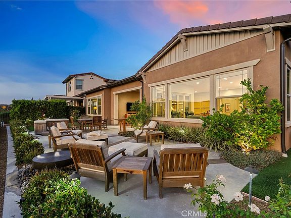 Spectacular sunsets, majestic moon shows, & serene sunrises are just some of the wondrous events that you will experience living at 17 Cantar St. Situated in Esencia's most exclusive 55+ community, Alondra, Cantar St. features only 9 homes on the view side of the street. And when one of those homes are offered up for sale, they usually don't last long. An enclosed front porch welcomes you in where daily chats w/ neighbors often take place, or afternoon tea w/ friends, but the best part is there are NO steps to the front door! A custom ramp was added by Shea homes to make entering a breeze. Once inside the long list of upgrades & unique features become apparent. From the natural wide plank wood flooring throughout, to the custom woodwork that adorns the walls, plantation shutters, surround sound speakers, custom 12x24 tile work from floor to ceiling in both the primary suite & guest suite, & a zero step entry into the primary shower. At the heart of the home is an amazing open living area where a gourmet kitchen was enriched w/ un-honed Taj Mahal quartzite countertops, tumble stone tiled backsplash & upgraded builder stainless steel appliance package. Restoration hardware light fixtures accent the kitchen & dining room area while 2 sets of bi-fold doors open up to the California room where countless games of bridge, Mexican train and chess were played in warm summer nights & cool winter evenings. Once outdoors there are several areas to keep the entertainment going & enjoy the picturesque atmosphere of Rancho Mission Viejo. Artificial grass, landscape lighting, hardscaped walkways, raised planter beds & mature greenery all add to the ambiance of 17 Cantar St. Some features you may not see but play an important role are: a paid for solar system, a Tesla power-wall that can provide electricity should the need arise, a whole house water softener, a motorized privacy screen in the California room, motorized drapes in the living room & primary bedroom, dual shower valves in the primary shower, & more. But the most unique feature of this home is the fact that there are NO steps throughout the whole house including the garage. All floor levels have been raised to provide easy in and out access from the front door to the rear yard. Gavilan communities such as Alondra have access to all RMV amenities PLUS some restricted venues like The Getaway or The Outlook were events and social gatherings take place all year long. Come live the good life at 17 Cantar St!