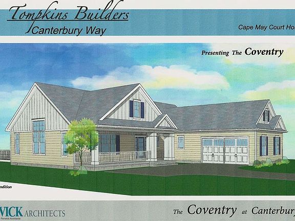 BRAND NEW CAPE MAY COURT HOUSE NEIGHBORHOOD located at 1121 S. Route 9, offering city water, city sewer, underground utilities, natural gas and sidewalks throughout. The "Coventry" Model is a large Rancher with a great open floor plan and high ceilings. There is a covered front porch, entry foyer and a great room consisting of the Living room and Dining Rooms with 13' ceilings. The kitchen has a ton of cabinetry, a center island, granite counter tops and stainless appliances and a sliding glass door leading to the rear deck. The master bedroom has a large walk in closet, a 10' vaulted ceiling and a private bathroom with a walk in shower. The remaining 3 bedrooms share a full hall bath with tile floors and granite topped vanity. There is also a half bath in the hall and a full size laundry room with washer/dryer hookups. The 2 car garage has insulation and drywall and an auto opener. This location does not require flood insurance. This neighborhood is conveniently located to shopping, dining, the hospital, and the beaches of Stone Harbor or North Wildwood. Note: Photos are representative of another Coventry Model previously built by Tompkins Builders and finishes are subject to change. Other models and finishes are available. Note: This home includes a $10,000. lot upgrade in Phase 2.