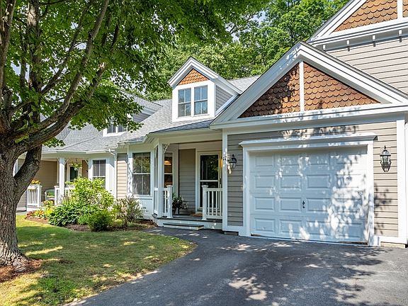 Welcome to 17 Canterbury Way, a pristine 55+ condo nestled at the end of a quiet cul-de-sac in the Villages at Crane Meadow. Enjoy privacy and picturesque wooded views from this beautifully maintained unit. Inside, gleaming hardwood floors and a first-floor master bedroom with a walk-in closet and a dressing area. The kitchen boasts a charming breakfast nook and ample cabinetry for all your culinary needs. The open-concept dining room flows into the bright living area, with vaulted ceilings, a gas fireplace, and sliders to a private deck and backyard. Upstairs, you'll find the second bedroom, an open loft ideal for a home office, a full bath, and additional attic storage. This home also offers brand-new wall-to-wall carpeting, central air, an energy-efficient gas furnace, a central vacuum system, first-floor laundry, and a full walkout basement with sliders to the backyard. Conveniently located near the Southborough line, shopping, major highways, and the New Lake Williams Boardwalk.