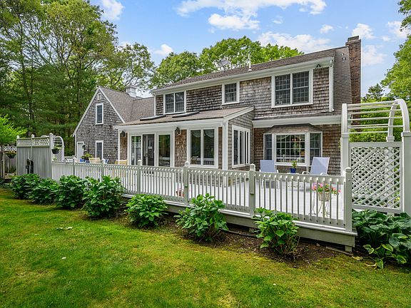 Light and bright Cape in much desired Rolling Hitch location 3 BR's, including 1st floor primary bedroom, 2.5 baths, first floor laundry, and lovely, updated kitchen that opens into a family room. 2nd floor has 2 large front to back bedrooms, and another full bath. There is a large unfinished room over the garage that can be finished. A 4 bedroom Title 5 system was installed in 2013. The lot is very private, and it is beautifully landscpaed with a large deck and patio. Taxes may vary due to owner use of property; buyer should confirm.