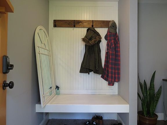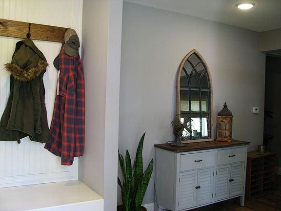 This 1.5 story home is truly better than new. It boasts a new gorgeous kitchen with contemporary cabinets, granite counter tops, subway tile back splash, breakfast bar wood floors and architectural windows for added appeal and s.s appliances- WOW! The front door leads to a foyer with bench seat and an open concept living room with columns, arched windows and wood floors. There is a dining nook or office with built in hutch. The first floor master bedroom is large and private and has 2 closets and wall to wall carpet. The second bedroom has plenty of space and the 3rd bedroom on the second floor is a delight! It spans the entire floor- room to sleep, play and lounge and get away from Mom and Dad. The bathroom has a large double vanity with granite counter. Access to the back yard is from the kitchen French door to a large private deck. The 2 tiered back yard is fenced- keep the pups/kids in! The home has newer roof, windows and vinyl siding .The bsmnt is framed out for future use