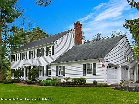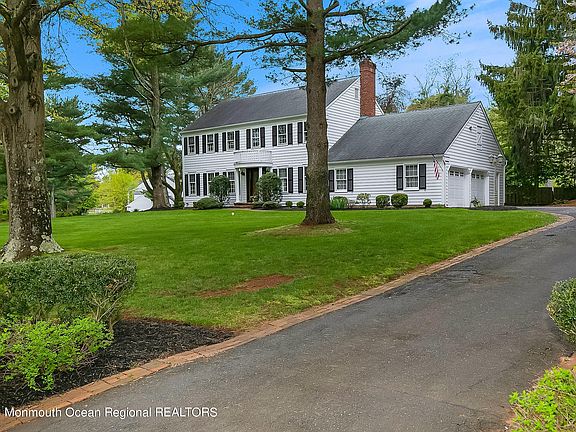 Drive home by Colts Necks picturesque horse farms and turn onto this favorite Cul-de-Sac street...Set upon a beautiful lot ,sits this 4/5 bedroom Colonial home w/pool, Oversized 2 car garage, full basement w/private, parklike landscape, sprinklers, backing to the wooded buffer. Updated kitchen, Hardwood floors, Perfect for entertaining family and friends. Close to Rt 18, easy drive to beach and NYÇ transportation.