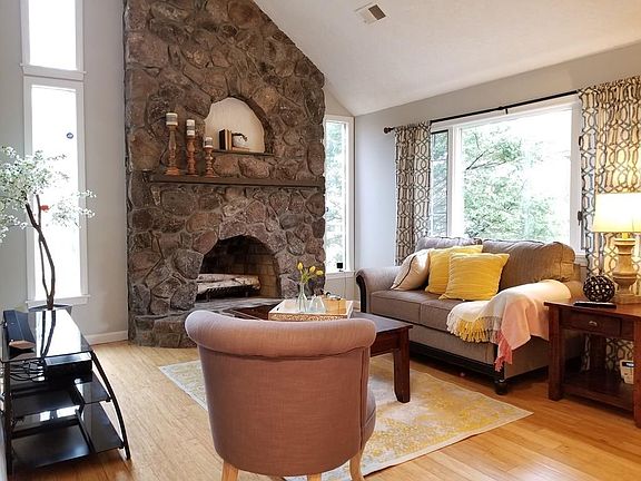 For more information visit 17CarriageHouse.com Nothing on the market in this price range compares to this gem! Located in an awesome neighborhood, this home has a great level backyard and you can walk to the elementary school and the playground! Close to major routes, shopping, and the train station. The living room has cathedral ceilings, floor to ceiling field stone fireplace, and opens to a spacious dining room with nice built-ins and counter tops! The kitchen has been updated with granite counters, stainless steel appliances, and a peninsula. Hardwood floors throughout both the 1st and 2nd floors. The upstairs has two bedrooms including a master bedroom with it's own access to the updated hall bathroom. The 3rd bedroom is located on the 1st floor. Two more rooms in the finished basement. One is being used as a family room and has field stone fireplace. The other room is being used as a playroom and exercise room. This home has gas heat, central air, town water and town sewer.