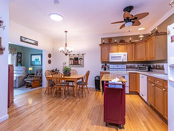 Welcome to Gilcreast Farms, a lovely 55+ community. Open your front door to a grand entrance of two story high ceilings in your living room. The kitchen is very well equipped with plenty of cabinet space, upgraded countertops, an open arch with a view into the living room and high ceilings. You'll notice the details such as crown molding, hardwood floors and the excellent condition of this home that has been very well maintained. First floor large primary bedroom with full en-suite, vaulted ceilings and a double closet. The second bedroom is spacious and has an additional unfinished storage area. This townhome has two and one half baths and an open loft that adds to the living area. The sunroom on the first floor overlooks the balcony and private back yard area. You'll love how the developer took special care in the placement of the homes in this community. Outside your back windows and balcony you'll see a mature tree lined sky view along with a beautifully landscaped lawn. The basement is very clean, plenty of room for a workout room or hobby room and has daylight from the walkout basement door. This home is equipped with a Generac Generator and central heat and A/C. Included is the community club house! Golfers can enjoy various courses nearby, including Sky Meadow Country Club, Passaconaway Country Club and Green Meadow Golf Club.