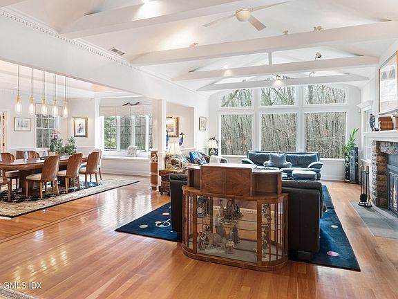 Welcome to this recently updated Backcountry oasis on 4.53 private acres. This custom built 5 bedroom and 3.5 bathroom home has room for everyone! Floor to ceiling windows and sliding glass doors provide natural light and an excellent flow to the outdoors. Highlights include high ceilings, a new kitchen, a first floor primary suite, a large office with a private deck, custom millwork and details throughout. Children's bedrooms with lofted work spaces and gaming room. The finished walkout lower level has a large office, 2 bedrooms, a recreational room and access to the garden. Dedicated bathroom with access to the pool area. Outside, a beautiful 3 season porch has great views of the heated pool, level lawn, pond and acres of woodlands. Direct access to the Greenwich Riding Trails!