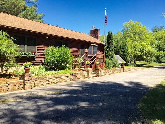 Looking for a gorgeous retreat lot?? This special property offers privacy and beauty and abuts the Winnetuxet River in historic Plympton! Canoe and fish, endless walking trails. Almost 7 acres of level land with the possibility of subdividing a 5 acre parcel. This log home is set in a beautiful, scenic setting and is move-in ready with lovely wood floors, large brick fireplace and gorgeous renovated kitchen with granite counters and stainless appliances. Large screened in porch for those warm summer nights and a new, oversized deck. One level living at it's best. Equestrian lovers take notice! Plenty of room for your boat, RV, barn, etc. A rare offering with endless possibilities!