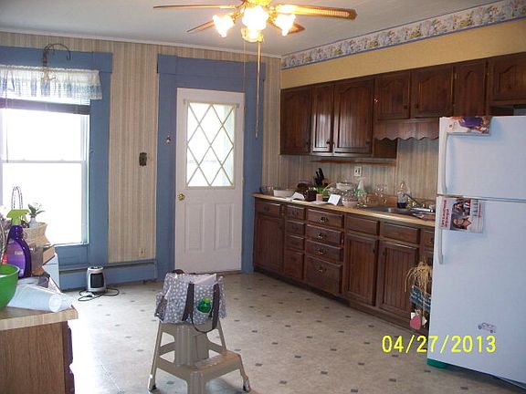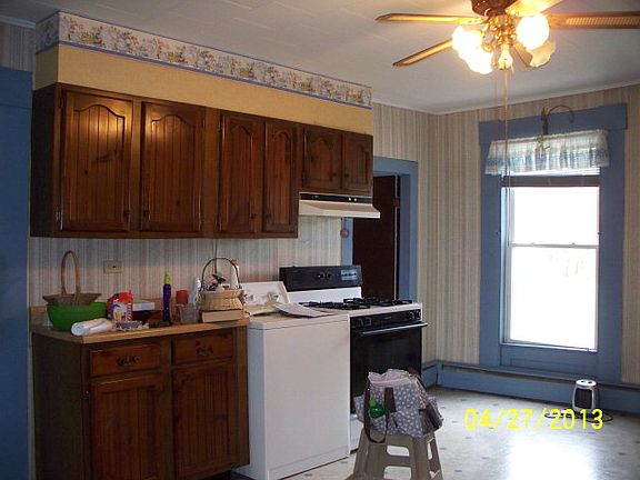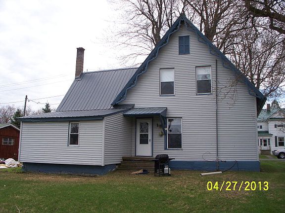NEW LOW PRICE! FOUR-BEDROOM FAMILY HOME IN VILLAGE. MANY RENOVATIONS have been completed in the past 12 years in this home: metal roof, vinyl siding, 200 amp electrical entrance, vinyl windows, storm doors, insulation, oil furnace, vinyl flooring. Original features of the home include the exterior gingerbread trim, wide moldings, original hardwood floors and staircase, high ceilings, summer kitchen, and enclosed sitting porch. All appliances are included and this home is move-in ready.