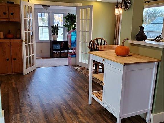 Nicely updated, Cozy, Colonial home with three bedrooms and two full baths. This home is low maintenance & has a basement walkout. Center street is a low traffic, side street. Updates include new flooring, bathrooms remodeled, newer siding, windows, furnace and hot water tank. Home has an open porch with a partially fenced yard.