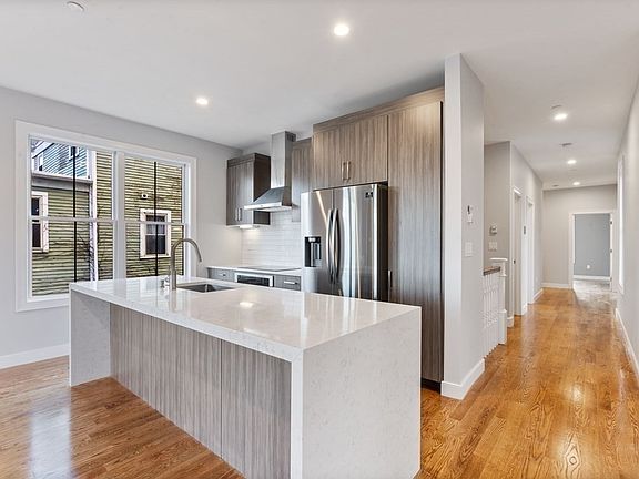 This Stunning, Spacious 5 story 3 Family is located in the beautiful and historic Fort Hill neighborhood. This property boasts a classic look, featuring new ground up construction, floor-through layout, deck with interior access, incredible city views, and garage parking. Kitchen features contemporary Barker Modern Italian cabinetry (light grey), quartz countertops, stainless steel appliances, baths brown legless, living rm 5' liner fireplace, walls light grey. Beautiful stained hardwood floors accent the spacial lines. This very quiet commuter neighborhood boasts lots of new construction and is close to parks, public transportation and shopping. Conveniently located near Northeastern University, the Boston Medical Center and the South End. Condo fees are estimates and subject to change once the condominium association is established. Taxes to be determined by the city within first year of completion.