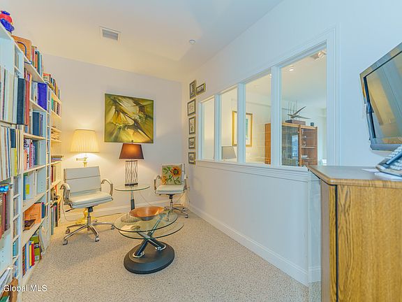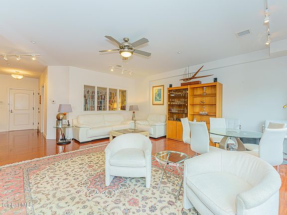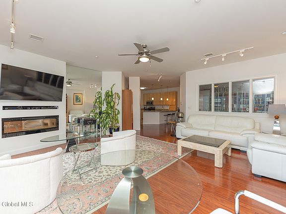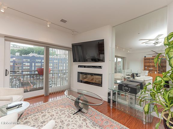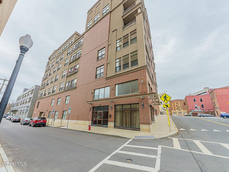 Unique opportunity for maintenance free living in this beautiful Manhattan style building with custom upgrades! Open floor plan with two bedrooms, two full baths and library, perfect for a home office. Living room with custom fireplace and sliding glass doors to the french balcony, open to dining area. Gourmet kitchen with custom cabinets, stainless steel appliances and pantry w/laundry. Primary bedroom suite with spacious walk-in closet and oversized primary bath. Building amenities include common meeting area, on-site fitness center, & secure key-fob entry system to name a few! This condo includes two heated parking space and three storage units. Enjoy the magnificent rooftop deck, great for grilling and socializing while admiring the Albany skyline and all that downtown has to offer 2022-06-23
