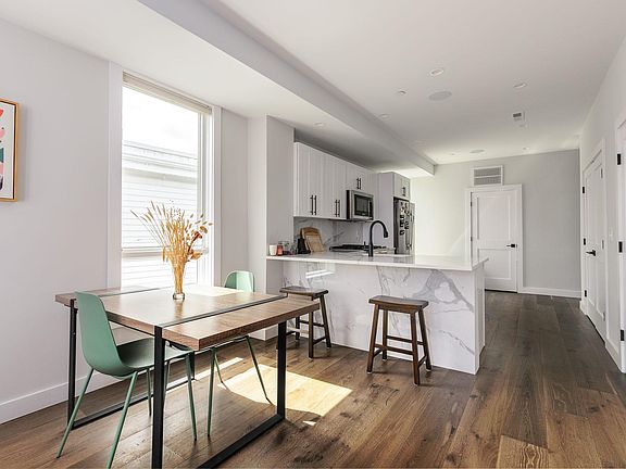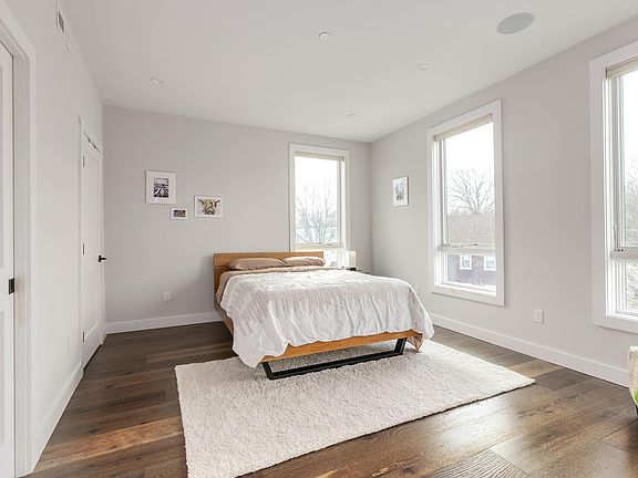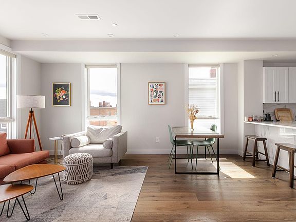 17 Chestnut Ave #3 -- Jamaica Plain gorgeous recent construction top floor 1250 sq. foot 2-bed/2-bath features open floor plan, top quality finishes + appliances, and a private deck. Windows on all four sides provide amazing light and views. Great ceiling height throughout. Stunning kitchen with JennAir stainless steel appliances, quartz countertops, and pantry storage. Two large bedrooms include primary bedroom with spa-like bath and custom closets. Marvin windows, built-in speakers in all rooms, central air, washer/dryer in unit, high-efficiency heat and hot water, and private storage. Ideally located close to the Train, Southwest Corridor, and bike path to Downtown Boston. No pets. One Month Broker Fee. Available June 1 for $3600/month.