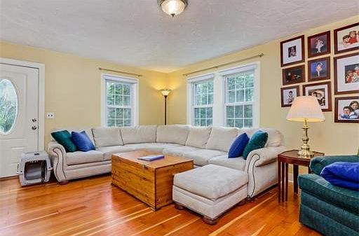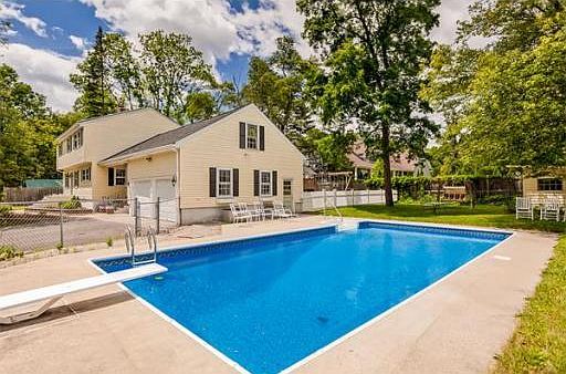 Privacy and convenience in this wonderful Hopkinton home with easy access to the schools and the center of town. This home boasts a large mudroom featuring custom storage cabinets that separates the home and the two car garage. From here you can step out to a private, level back yard and in ground pool with new liner and pump. The house has a spacious, bright eat in kitchen and a front to back living room with hardwood floors. There is also a first floor full bath and office, which could be used as a 5th bedroom. The lower level family room has a wet bar and wood stove plus a workshop. The home owners have installed solar panels which have completely eliminated an electric bill for this property! The warranty for the solar panels is transferable to the new owners.