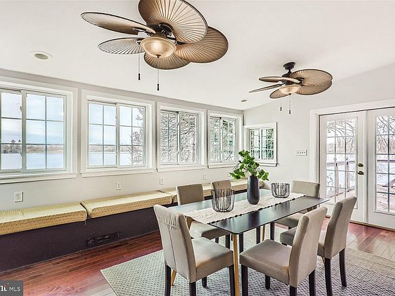 A water-lovers paradise, a 5BR/3BA expanded split foyer home located on a large lot with waterfront property in the quiet water oriented community of Chesaco Park! Drive up past an oversized garage with two access doors and a fenced spacious front yard to the door into your forever home. The beautiful wood staircase takes you up to the main living space beaming with an abundance of natural light, gleaming hardwood floors, and an open floor plan. The spacious living room features a large bay window with a wide windowsill, ideal for house plants, and french doors to the side yard. The amazing kitchen boasts tons of wood cabinets including two pantries, granite counters, a coffee bar, and a peninsula with seating. Through french doors, step into an oversized dining room with a built-in bench, a wall of windows that offer a stunning water view, and french doors to a large deck. An oversized primary bedroom with two closets, a primary sized bedroom, and a full bath completes the main floor. The stunning wood floors continue up the open stairs to the second floor and a large family room with vaulted ceilings, tons of natural light, skylights, built-in shelving, a gas fireplace and another spectacular view of the waterfront. In addition, two sizable bedrooms, a full bath with a deep claw foot jetted tub, and three mini-split HVAC units completes this floor. Onto the lower level offering an additional family room with a brick wood burning fireplace featuring a unique wood mantel, and the wild fifth bedroom with a private ensuite boasting a step-in jetted tub, and a walk-in shower. French doors take you to a covered patio and the playground of your dreams. Entertain on the upper deck, off the kitchen, then make your way to the yard with tiered landscaping, an above ground oval pool surrounded by a large wood deck that overlooks Back River, a walkway down to the dock offering space for a boat, and both a single and double wench systems. This home is move-in ready and has so much to offer new homeowners, including a gas tankless water heater, new gas HVAC and recessed lighting! Enjoy this beautiful oasis!