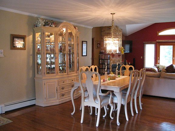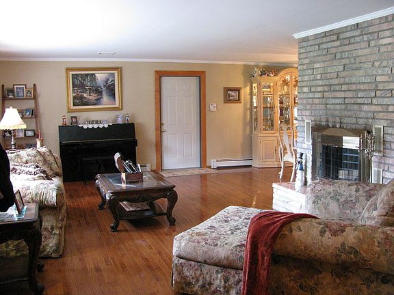Approx. 3,000 sq ft of living sp. Be surprised when you walk thorough the door of this 4br, 3 full ba expanded ranch set on tranquil acre plus property. See additonal remarks!Complete with peaceful stream. Approx 3000 sq ft; FLR with wood burning fpl, FDR, newer kit w/black cherry cabinets, granite counter tops and SS appliances, breakfast room w/sgd, vaulted ceiling w/built in china in the same black cherry and granite as kitchen, FR w/sgd, vaulted ceiling, gas fireplace, master bedroom w/sgd, vaulted ceiling, wic, master bath w/soaking tub and sep. glass stall shower. Second master suite w/wic and full bath (SS), two add family brs, main bath with sep shower and tub. Approx 1,800 sq ft fin.bsmt w/bar. Past 8 yrs~roof, siding, sprinklers, furnace, some windows, patio, septic.