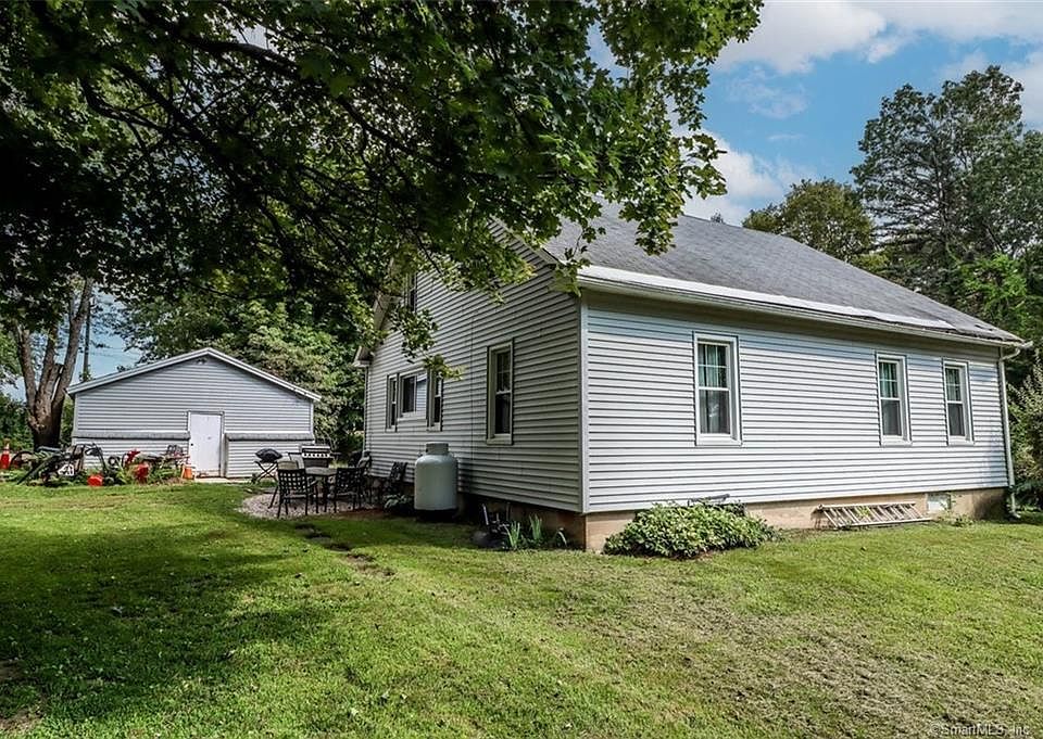 4/5 bedroom cape on perfectly level 1 acre lot with 2 car detached garage. Main level master bedroom. Large living and dining rooms with hardwood floors. Eat in kitchen with laundry hookup. Sunroom. Oil heat. Quiet cul de sac. Can be purchased with adjoing lot on MLS.