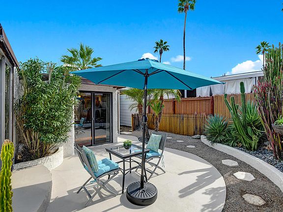 ONE OF THE BEST DEALS IN PALM DESERT! Located in the well-maintained Silver Spur Community, which offers a gorgeous pool, spa, clubhouse, and fitness center, this manufactured home features stunning eastern AND western views, a serene back patio, and plenty of storage. This unit would make the perfect full-time home or weekend getaway. A short drive from great hiking, El Paseo shopping/dining, and great golfing options, this little dream home offers the perfect blend of comfort and convenience. As you enter, you'll be greeted by a bright and airy living room with large windows that showcase the stunning views of the surrounding mountains. The kitchen is equipped with all the necessities, including modern appliances and ample storage space; its adjacent dining room can also be used as a home office. The master bedroom is a true oasis, with its own en-suite bathroom, built-ins, and laundry room. The guest bathroom has a shower/tub combo (not to mention great wallpaper!). The property's charming touches and upgrades make this a little piece of paradise in Palm Desert. Schedule your tour today!