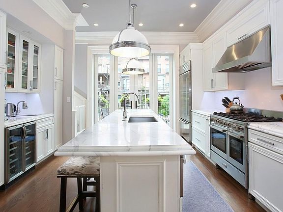 Situated in a beautiful low stoop building on tree-lined Claremont Park this 3 bedroom, 3 1/2 bath parlor triplex is what you have been waiting for! Enter into a grand fireplaced living room with 10' ceilings, gleaming hardwood floors and a stunning open kitchen that will inspire the inner chef in you. A private deck off the kitchen is perfect for summer entertainment and grilling. On the upper 2nd floor level are two good sized bedrooms both with en suite well appointed bathrooms and large custom closets. The lower level offers a spacious media room with built-ins and large glass doors leading to a private patio. The 3rd bedroom and another full bath are also located on this floor along with a large storage room. Direct access for 2 cars featuring an electronic gate for privacy and security. First showings Wednesday July 8th by appointment only.
