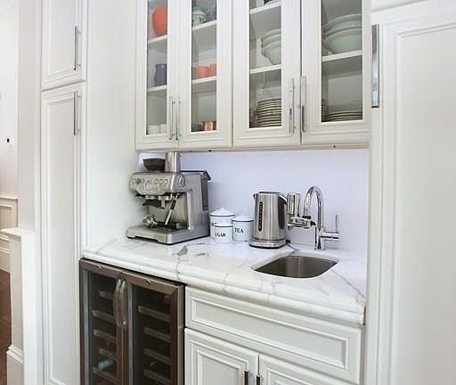 - Kit Dscrp: Flooring - Hardwood, Countertops - Stone/Granite/Solid, Recessed Lighting, Kitchen Island, Open Floor Plan, Main Level, Balcony / Deck, Exterior Access, Wine Chiller, Wet Bar, Gas Stove