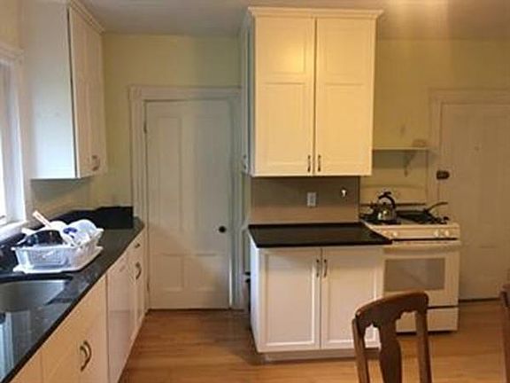 Large 6rm 2br 1ba apartment on 2nd floor of a two family in Newtonville. Excellent access to Boson and on a quiet street. Hardwood floors throughout the unit and a newly completed kitchen with granite countertops. Refrigerator and dining area in the kitchen. There are a large dining room and a bonus area that could be a study or extra storage room. Two off-street parking spots and laundry in basement.