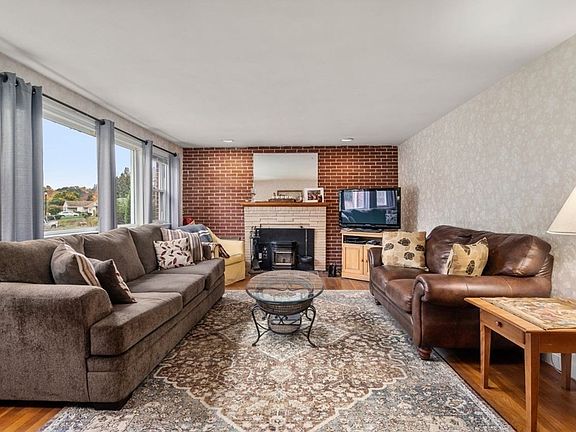 WEST SIDE: single-level, ranch style property ~ 2 bedrooms ~ 1 full bath. Open living room with hardwood floor, bay window, fireplace with stove insert. Dining room with hardwood floor; built-in cabinets. Two spacious bedrooms with hardwood floors and plenty of closet space. Walk-up attic for storage. Oversize garage located underneath has space for vehicle + storage, or 2 vehicles parked tandem. Landscaped yard, over 1/4 acre! Great location within immediate proximity to Worcester State University, public schools; short trip to cafes, restaurants, shopping and services. Minutes to Worcester Airport/ORH, Clark University, WPI, Assumption, MCPHS.