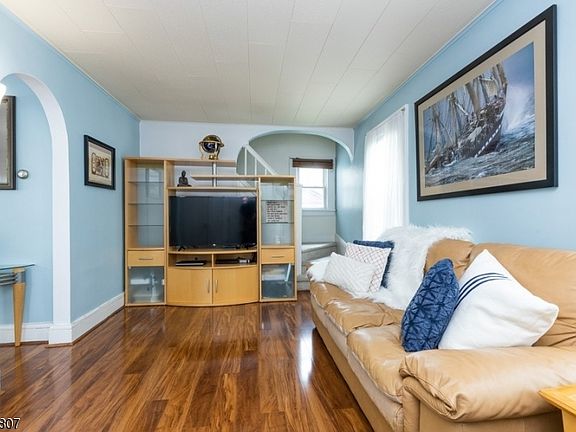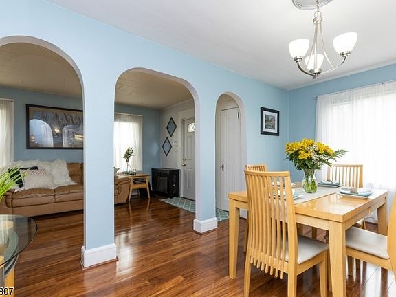 Bright and spacious home close to retail/NYC transportation. First floor consists of a living room with decorative arched opens walls leading to dinning room, both covered in Brazilian cherry floors. The kitchen is spacious with tile floors, stainless steel appliances, ample counter and cabinet space offering the best view to the lovely landscaped backyard. Step down from the kitchen and you will find a separate laundry room area with access to the backyard. Basement is partially finished with a wet sink and full bath. Second floor consist of 3 generously sized bedrooms/partial walk in closets, carpet throughout and a full bathroom. Home has detached garage and driveway for 2 cars. This is a very special home that is move-in ready or can we taken to the next level.