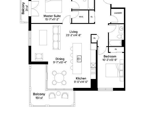 Private balconyBright open-concept kitchenExpansive windowsEngineered hardwood floorsSleek quartz countertopsTiled showers and tubs