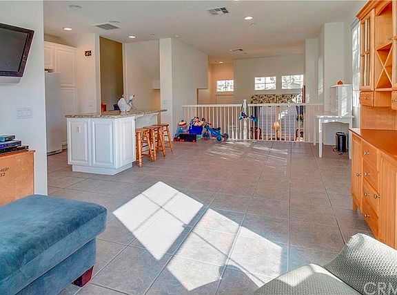 Light & Bright Unique End Unit With A Large Wrap Around Porch....Great Location!....Plenty Of Extra Parking Nearby. Refrigerator, washer & dryer, and closet organizer in master bedroom are included. The open floor plan has a large open kitchen/family room which is perfect for entertaining. The kitchen shines with a large granite island and granite counter tops and backsplash. The white cabinets make it light bright and very appealing. The living room has a gas fireplace and high cathedral ceilings. The interior was just painted. Beautiful window treatments in the living room. The three bedrooms are all upstairs and are complemented with plenty of light throughout. The laundry room is upstairs for convenience. The attached two car garage offers plenty of space including a storage bonus area that is about 250 square feet. The owners have added ceiling fans in all of the rooms. Ladera Ranch offers award winning schools, swimming pools, water park, playgrounds, a skate park and hiking trails. Don't miss the opportunity to live in one of Orange County's premiere neighborhoods.