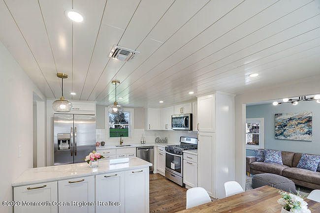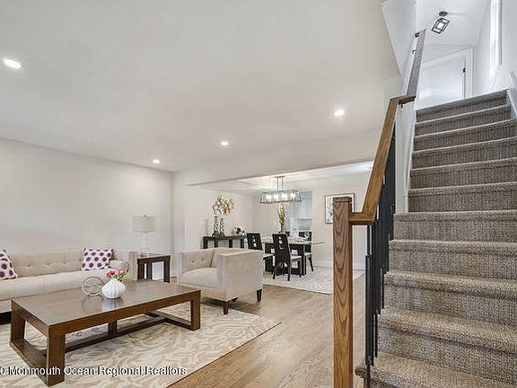 Home Sweet Home! Located on a quiet street and only a couple of blocks from the heart of town, you'll find the completely remodeled Colonial that you've been looking for! At first sight you'll be envisioning yourself relaxing on the rocking chair front porch on a perfect summer day. Upon entrance, this stunning home will take your breath away with a flowing, spacious floor plan, recessed lighting, and eye-catching fixtures and details. The gorgeous living room is bathed in light with large windows and stunning new hardwood floors which leads to the formal, spacious dining room perfect for hosting dinner with friends and family.
