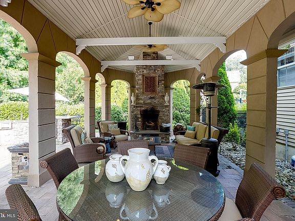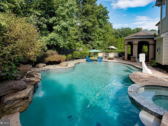 Sophisticated living welcomes you from the curb but there's definitely a party happening in the back! This gorgeous and stately home is sited at the end of a quiet cul-de-sac, with an extremely private back yard filled with incredible entertaining spaces surrounding an inground heated, gunite pool with sun-shelf, spa and waterfall feature. You'll find so much space for fun and memory making in the huge covered terrace with dining space, an outdoor wood-burning fireplace for those cooler evenings, numerous areas for reclining and dining on the travertine patio and pool deck as everyone enjoys splashing in the pool. The outdoor area also includes a Kitchen/Cook center with granite top, bar seating, a built in grill with side burner plus outdoor refrigerator drawers, ice maker and kegerator. The exterior also has a sprinkler system and professional landscaping with nightscape lighting. A paved driveway leads to the side turned 2 car garage and a meandering paver walkways provide access to the grand and gracious front porch entry. Step through beautiful doors into a highly upgraded home with fine appointments throughout. This home meets every need of the modern family. Amazingly comfortable throughout, open spaces so everyone can join in plus lovely quiet nooks and spaces where you can find the perfect amount of privacy. Add to that the opportunity to entertain with ease, whether its a small crowd or a huge event. High ceilings, extensive millwork including shiplap, window, door and floor trims, crown moldings, wainscotings and more. Neutral decor coordinates with hardwood flooring throughout the main, while large and abundant windows flood the home with natural light. The home includes 2 interior fireplaces, a formal Dining Room with Butler's pantry, Living room with fireplace and custom cabinetry, vaulted ceiling in the fireside Family Room and a chef's Kitchen with a seated/serving island, coordinating wood cabinetry in creams and natural wood tones, granite tops and Wolf appliance package including a 6 burner range, double ovens, warming drawer and microwave; space for a generous breakfast table and columned delineation from the Family Room; a first floor Office, Laundry and upgraded Powder Room. Your upper floor includes the Owner's en-suite which is simply beautiful with wood flooring, large Sitting room, walk in closets, separate vanity/makeup station, and a lavish attached bathroom showcased by custom cabinets, walk in shower, steam shower and garden tub . The remaining 3 Bedrooms have lots of closet space and share the use of the upgraded main bathroom. Take the party downstairs to a location with flexible living space. Again, you'll find every entertaining demand met in the 4 areas of this level which include a Family Room with gas fireplace, a play room, seated bar and game area. The bar also includes 2 wine fridges, a refrigerator, freezer, bar sink, built in cabinetry and a kegerator. There's additional storage on this level too. All of this is located in the highly rated Evesham school system, near shopping, restaurants and major highways in every direction. There's so much to love about this neighborhood and this home! It's a real must see to appreciate. Call today!