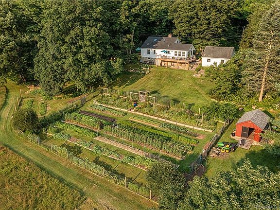 This unique 4.8 acre property in Gurleyville Village is part of the Joshua Tract Conservation Society with access to the Fenton River. The cape style home was renovated inside and out in 2017, with a floor plan that supports single floor living with 2 bedrooms and a full bath on the first floor. Interior renovations included a custom kitchen with quartz counters and all new appliances, hardwood floors, new trim & interior doors, neutral paint, and a propane fireplace heater in the living room. A full bath was added to the second floor where youll find an additional bedroom. Exterior improvements included a new roof with 2 skylights, vinyl siding, Harvey windows, re-pointed chimney, and extra insulation added. A deck with cable railings and an automatic solar shade awning provides an opportunity to enjoy the picturesque views. Electrical panel upgraded to 200 Amp with a generator hookup. A Buderus high efficiency boiler was installed in 2009. The detached 2-car garage, walkout unfinished basement and 12x18 garden shed has all your storage needs covered.
