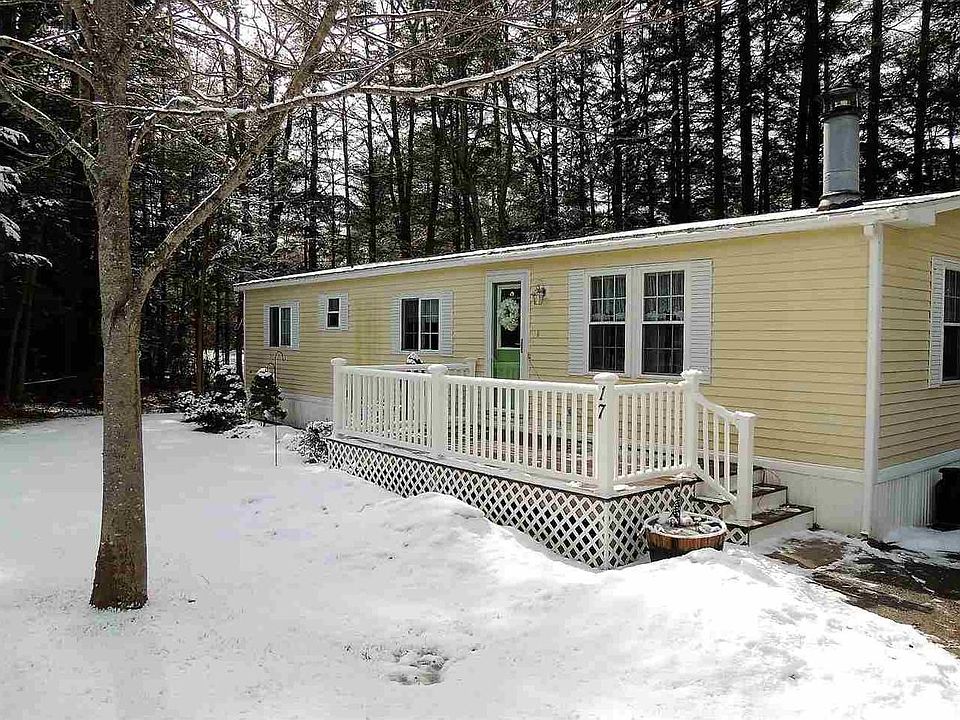 Affordable double-wide manufactured ranch home on its own .52 acre lot. No Park Fees! The home is located convenient to local services, restaurants and groceries yet is tucked away in the small subdivision of Colcord Woods and serviced with public water and sewer. The property has a large paved driveway, 2 large decks, one in front and a very private one that overlooks Colcord Pond. Great for the wild life enthusiast! The interior has a master with ¾ bath, a large 2nd bedroom and a flex room for your crafts, office or a 3rd bedroom. The spacious living room has a vaulted ceiling and a gas fireplace for those cold New Hampshire nights. The dining area is light and bright and is open to the living room and the kitchen, which is perfect for entertaining. The fully applianced kitchen opens onto the back deck for those summer BBQâs. If itâs too hot outside, relax in the comfort of central A/C. Truly a must see!