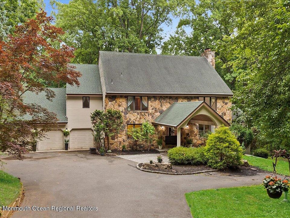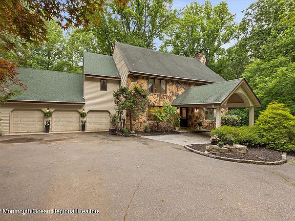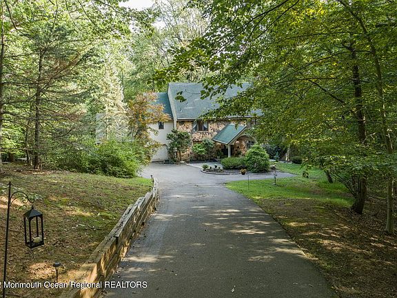 Nature-lovers paradise for UNDER a MILLION DOLLARS. Own your own modern hideaway right in Morganville! Unique 3400 SF design nestled on 3.75 ACRES of COMPLETE PRIVACY (w/ finished walkout basement 5,000 SF!!) Gorgeous estate set back 600 ft. on small, quiet street. All you'll hear are the songs of Robins & Morning Doves. All you'll see are majestic pines and blooming tulip trees. Kitchen is a bit outdated, however the previous (original) owner built this home like Fort Knox, easy to maintain and built to last, UNDER a MILLION DOLLARS. Grand entrance, spacious open floor plan w/soaring Living Room and Dining Room 25 ft. cathedral ceilings flooded w/ natural light. French doors lead to oversized Wrap-Around Deck. Huge Kitchen w/large Walk-In Pantry, Laundry Room w/chute, Sunroom, Open Loft M aster Bedroom + 4 Bedrooms with many spacious, Walk-In Closets. 3.5 baths + 2 wood-burning fireplaces.Finished Basement offers Family Room, Game Room, Workshop + storage. 3 Car Garage, stand-up Attic. Close to NYC trans. Top-ranked school system including nationally-recognized magnet schools. Conveniently located close to shopping, restaurants, highways.Top-ranked school system including nationally-recognized magnet high schools. Conveniently located close to bus and train, shopping, restuarants, highways.