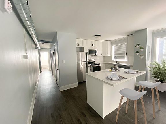 Beautiful 2 bedroom, 1 bathroom unit (never lived in) with an open concept living area, modern kitchen with quartz countertops and tile backsplash. The large kitchen island provides space for seating. Brand new flooring through out. All new bathroom with full sized bath and tile surround. Brand new windows. The units has individual heat and a/c which means you set your temperature to your personal comfort. This building also offers on site laundry and a parking space can be rented for $50/month. The Merritt hiking trail, complete with disc golf course, is right in your back yard! Seconds from the 406 and just moments to downtown and on major bus routes and walking distance to many amenities. 2 Bedroom, 1 bathroom Open concept Quartz countertops New windows Individualized heat and a/c Dishwasher Parking available for $50/month On-site laundry Heat & water included Available for rent now! If you are interested in booking a viewing. Please reply with: 1. Description of you or whoever is planning on living in the unit (the more detail the better) 2. Your name and phone # so I can reach out to you 3. What is your occupation? Full-time? Part-time? Student? - Where? 4. Preferred move-in date 5. Confirm you are able to provide proof of income, proof of employment, and credit check.