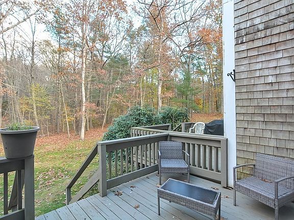 Welcome to Colonial Acres, Norton's wooded, serene & secluded condo complex. This townhouse offers 2+ bedrooms and 1.5 baths. The First floor features hardwood floors, open floor plan with a light/bright eat-in-kitchen with stainless appliances and granite countertops. Open the slider onto the Private deck overlooking the wooded, spacious and level grounds. Back inside is the 1/2 bath perfect for guests. The 2nd floor consists of 2 generous sized bedrooms and an large full bath. 3rd level leads to  a loft ( potential for a 3rd bedroom). Unfinished basement, with laundry, is ready for you to finish for an additional 600 sqft of living area. Central Air and Efficient Gas Heat. Don't Miss out on this one!