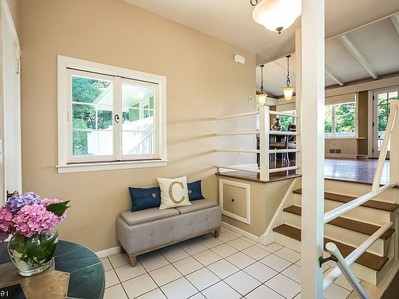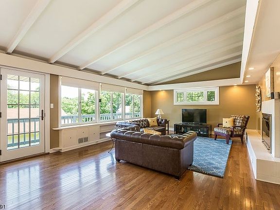 A stunning Midcentury Modern home in New Providence. Reverse living at its best, this home is perfect for entertaining. Open-concept living and dining rooms have high ceilings and beam with natural light. An eat-in kitchen with French doors to a wraparound deck that surrounds three sides of the house provide an easy indoor-outdoor flow and the large windows provide great views. The lower level contains three bedrooms. The master suite boasts hardwood floors, a large double closet, and two granite-topped vanities. The laundry/mudroom room is conveniently located a few steps from the bedrooms.A bonus room is located behind the one plus car garage . A level backyard, mature trees, lush landscapes,brick paver driveway, and lovely neighborhood add to this chic and stylish property in sought-after New Providence.