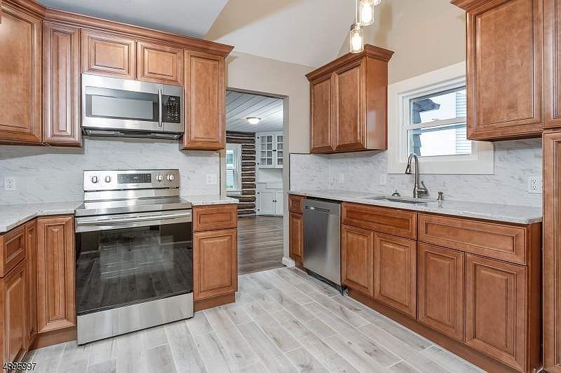 Beautifully updated Lake Mohawk home close to downtown Lake Mohawk. This 3 br 1.5 ba home has a beautiful new kitchen, new roof, brand new septic, newly finished floors, new windows, new bathrooms,newly painted outside, new oil tank, and newly finished basement. Pretty much everything in this house is new! This is a great opportunity to live in Lake Mohawk at a great price! This house features 2 places to park for ample parking, one in front of the garage, and one on sunset trail. This home is forced hot air and AC ready, m it very easy to add AC for the new buyer. You don't want to miss this beautiful home in this beautiful part of Sparta!
